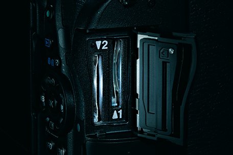 La K-1 Mark II tiene 2 ranuras para tarjetas SD, SDHC y SDXC que te ayudarán a conseguir el máximo rendimiento posible con sus 3 modos de grabación de datos: