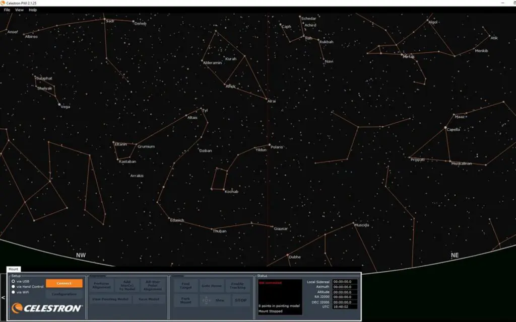 El programa CPWI es un software muy potente que te permite realizar la alineación del telescopio desde tu ordenador.