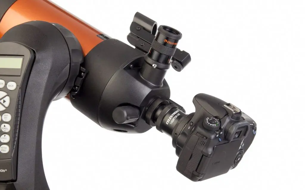 Existen multitud de accesorios compatibles con estos telescopios, oculares de todo tipo siempre que el barrilete sea de 1.25″, filtros, lentes de Barlow, incluso Wifi para utilizarlo de manera remota, pero el accesorio que destaca (en mi opinión) es la posibilidad de adaptar una cámara réflex al telescopio para realizar astrofotografía.